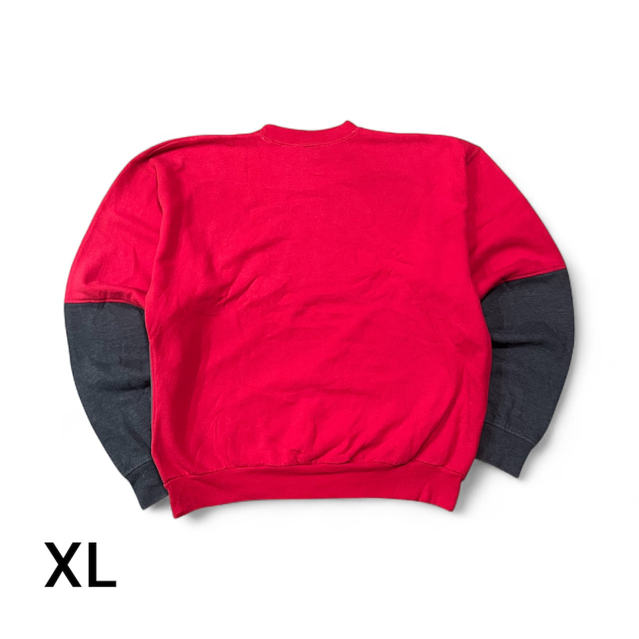Reworked Stussy Patchwork Hoodie – Red and Grey Design with Bronze Stussy Embroidery Logo Size XL